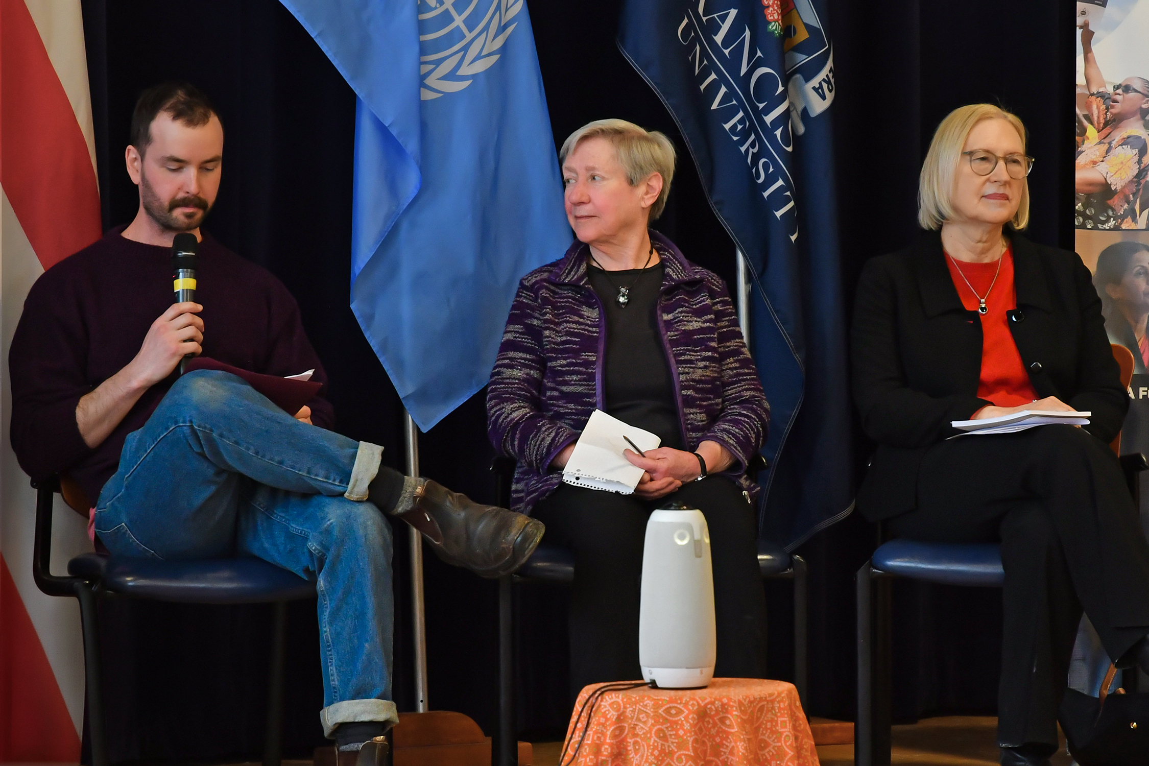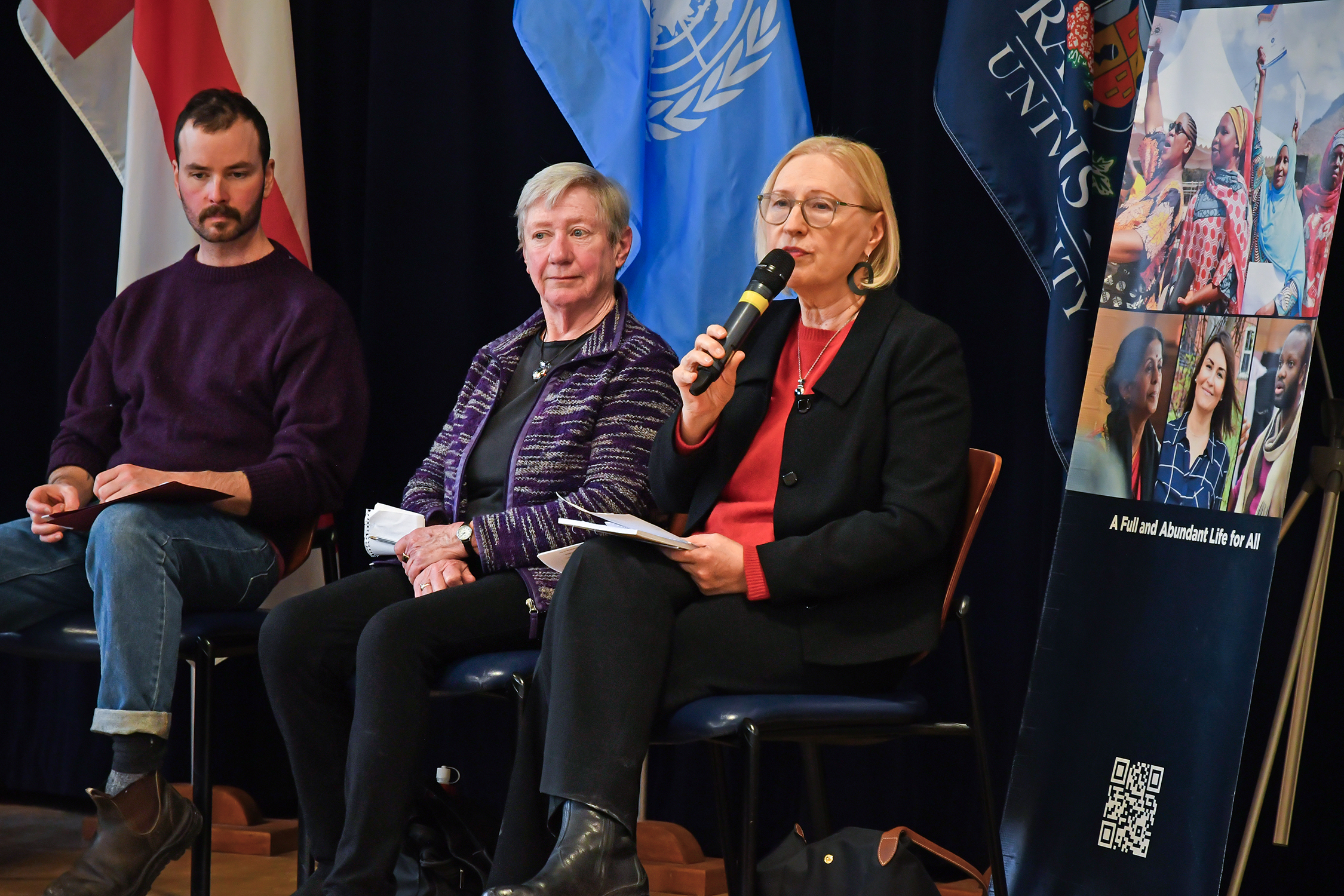 The Coady Institute’s Digafie Debalke reached out to the United Nations Assistant Secretary General for Peacebuiding and Peace Support, ELIZABETH SPEHAR, in the hope that she might be part of a discussion about peacebuilding and Canada’s role in multilateralism. To his delight, she accepted the invitation! Since Digafie is also my husband, he quickly asked me and the Marthas to be part of the event, knowing the Marthas’ deep commitment to peace. So, the planning began, and we ended up hosting a panel that followed Ms. Spehar’s keynote address in the morning of February 7th at the Coady Institute at St. Francis Xavier University here in Antigonish. It was a real gift to have a high-level UN official here to speak about the importance of multilateralism and of the UN, and the importance of working for peace right now in our fractured world.